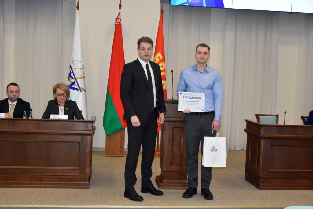 Первый секретарь Московского районного комитета ОО «БРСМ» г. Минска Никитин Егор Анатольевич наградил актив ПО «БРСМ» Главного управления, за совместную, активную и плодотворную работу.